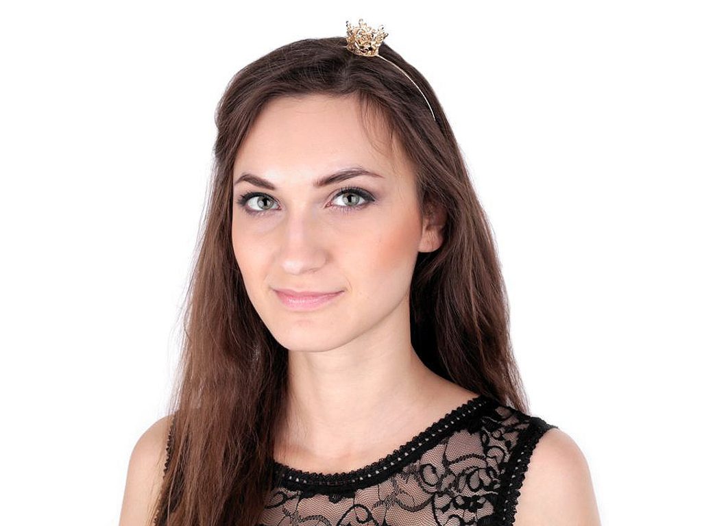 Kovová čelenka s korunkou, která je umístěná na stranu, potěší malé i velké slečny. Děti ji využijí na karneval, větší slečny třeba na rozlučku se svobodou. Čelenka vyniká precizním zpracováním.