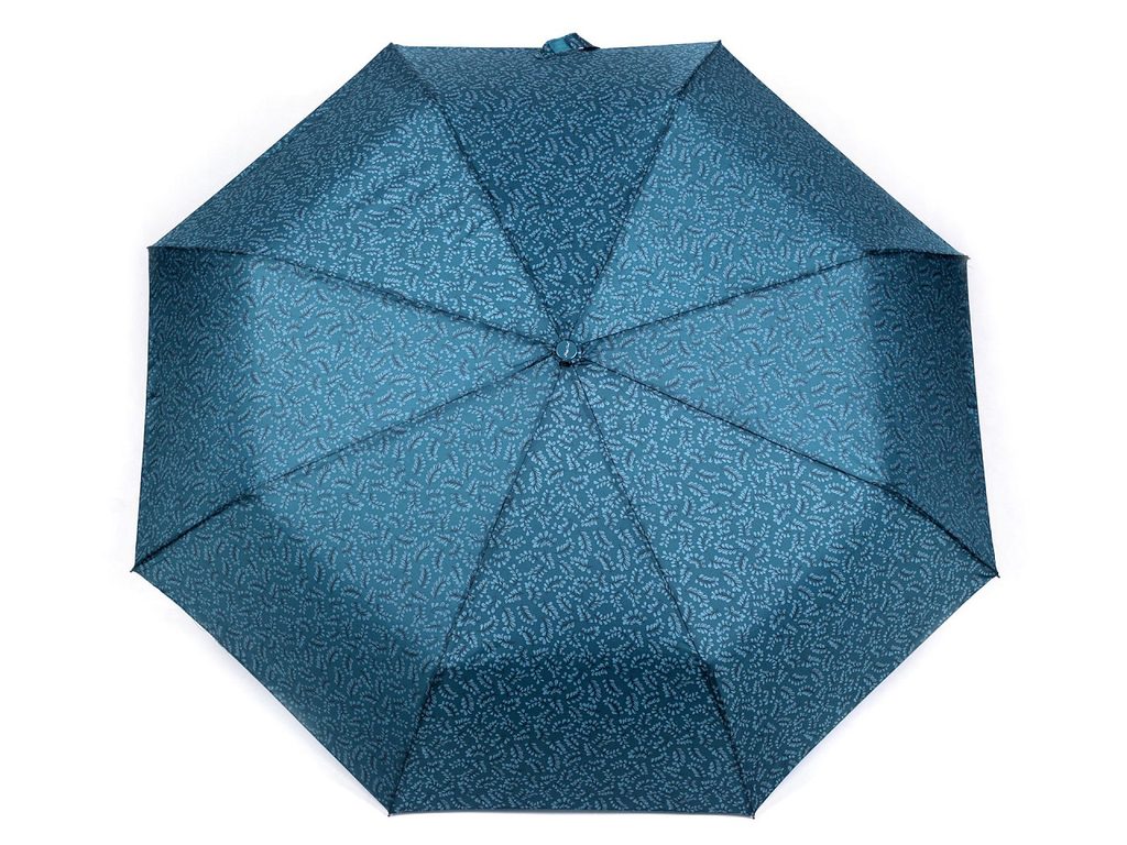 Plně automatický skládací deštník je vyrobený z kvalitního materiálu. Potah deštníku má drobný lístečkový motiv a uv filtr. Deštník má vystřelovací/sestřelovací mechanizmus. Rozevře i zavře se stisknutím tlačítka se šipkou nahoru nebo dolů. Rukojeť deštníku je plastová, zakončená lesklou koncovkou s metalickým leskem, je opatřená poutkem. Konstrukce deštníku se skládá z osmi polí. Součástí deštníku je ochranný obal.