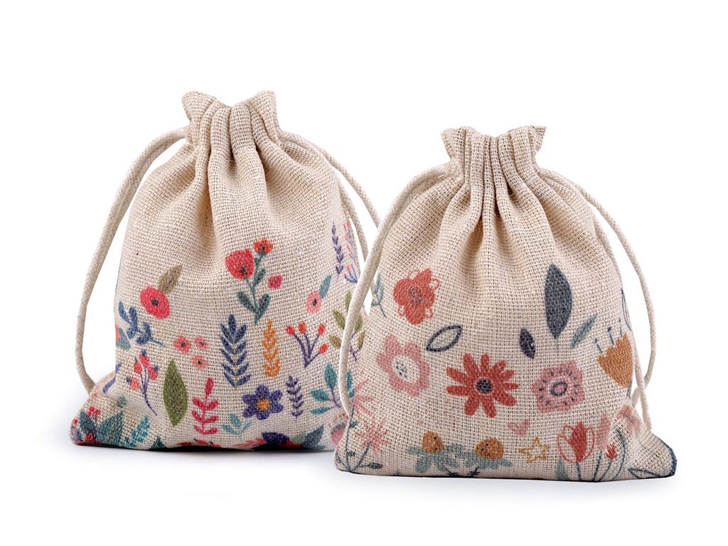 Dárkový pytlík jarní 10x13 cm lněný s květy