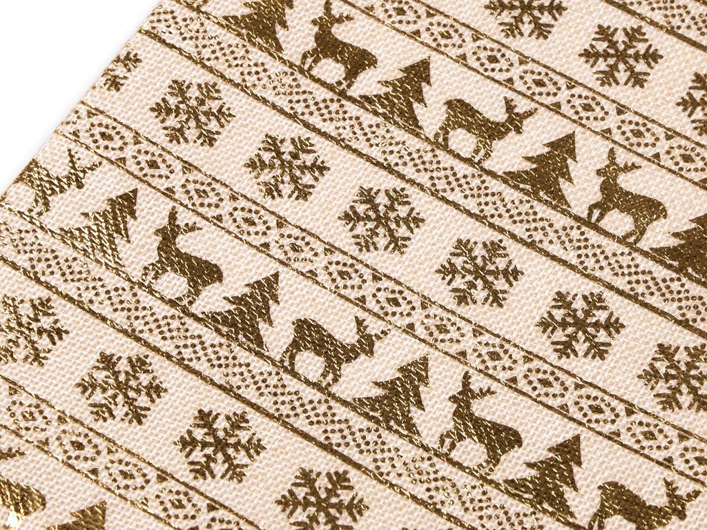 Pytlík s vánočním metalickým potiskem má zajímavý materiál, který imituje jutu. Pohodlně se uzavírá pomocí stahovacích saténových šňůrek. Můžete ho použít na dárky nebo ho naplnit mikulášskou nadílkou. Dá se naaranžovat jako vánoční dekorace.
