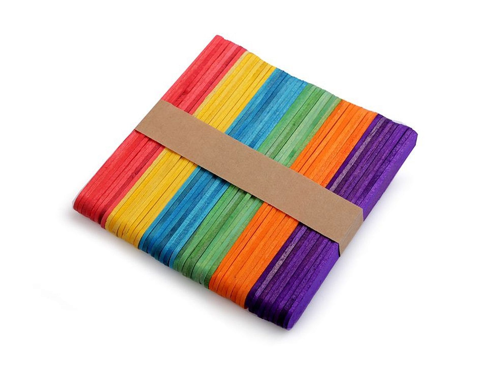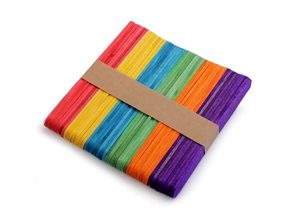 Dřevěné špachtle barevné 1x11,4 cm 50 kusů