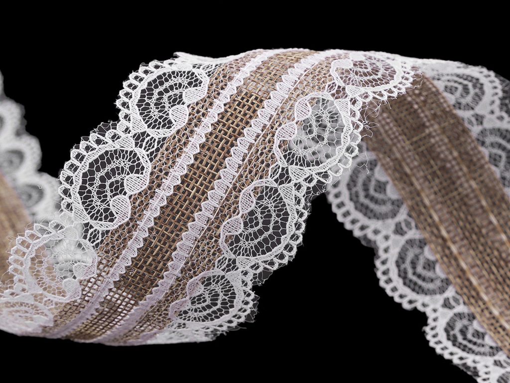 METRÁŽ Jutová stuha s krajkou šíře 55 mm
