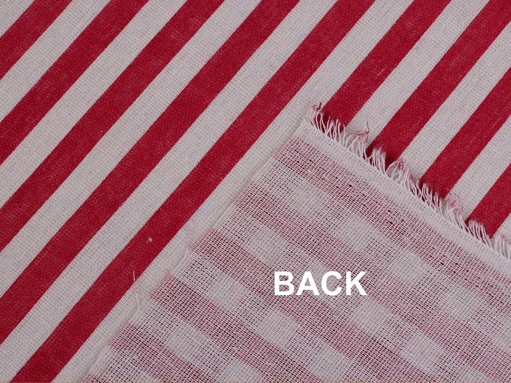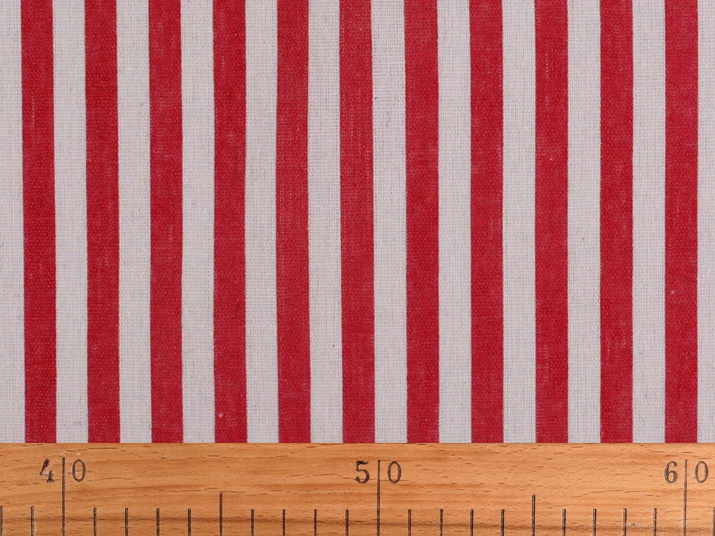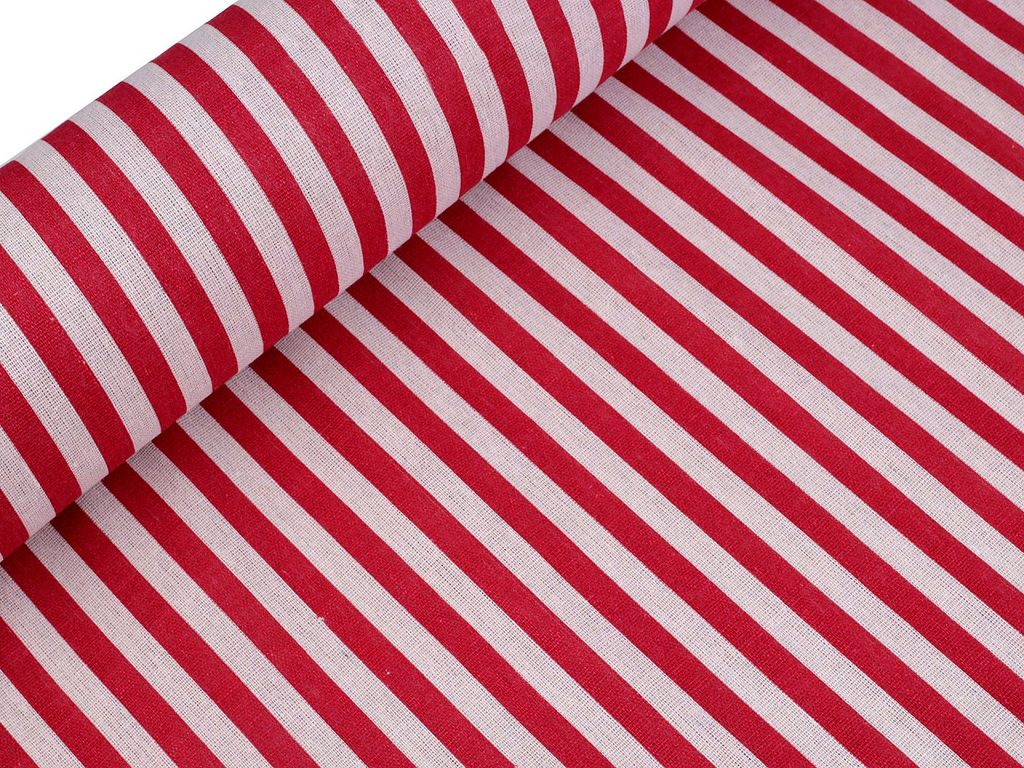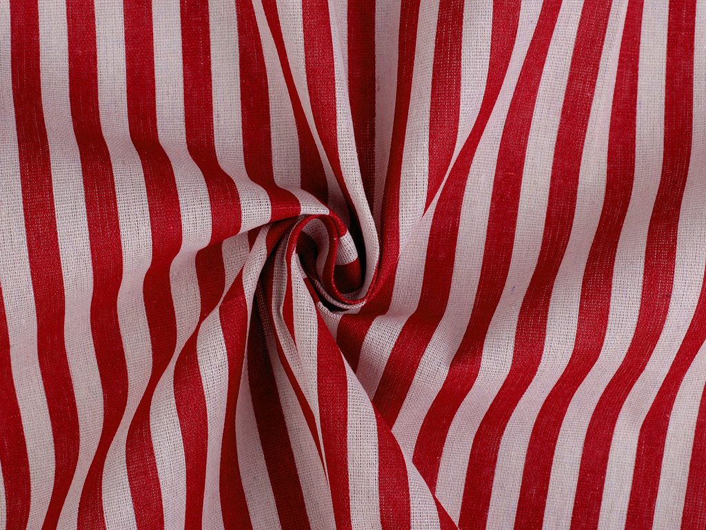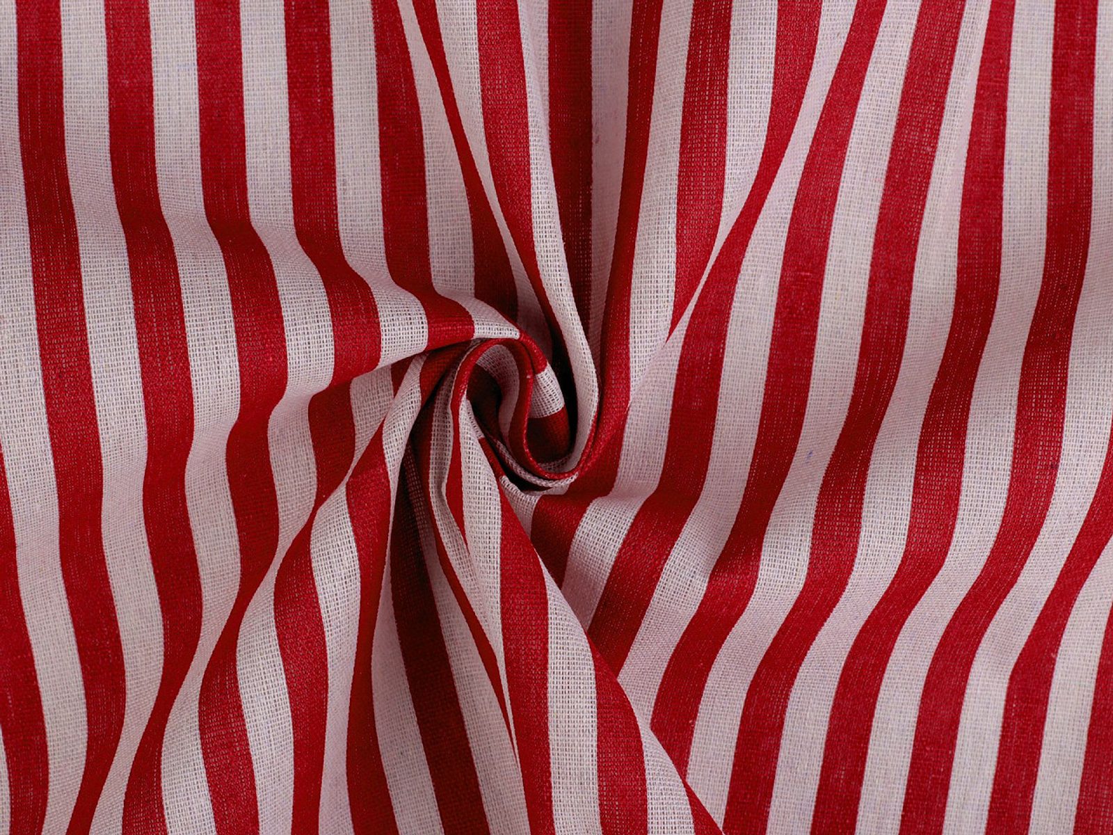 Bavlněnou látku zdobí potisk pruhů. Svou plátnovou vazbou připomíná len. Je hrubší, pevná, vhodná na šití ubrusů, běhounů, prostírání, dekoračních polštářů, dětských teepee apod.