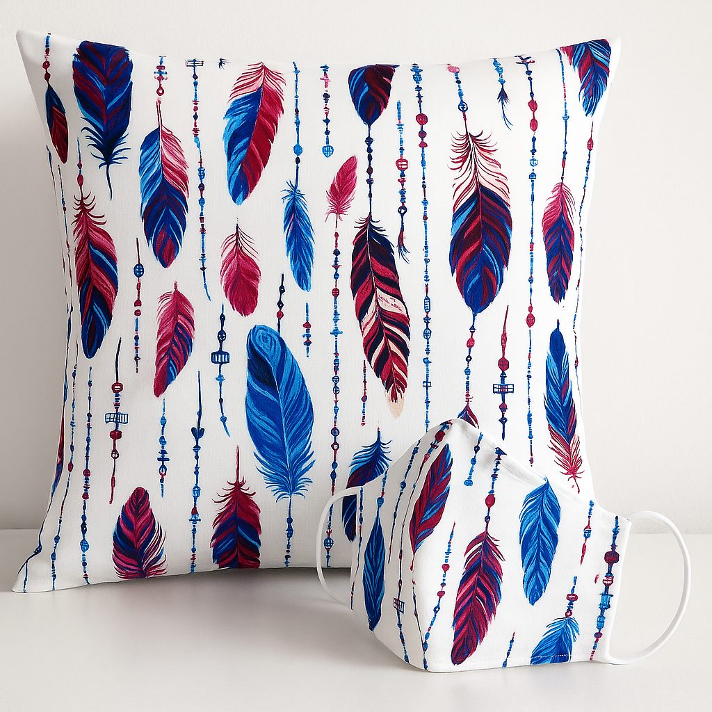 Bavlněnou látku s motivy peříček využijete na šití polštářů, povlečení, závěsů, mantinelů do postýlek i hnízd pro děti. Je vhodná také na šití roušek.