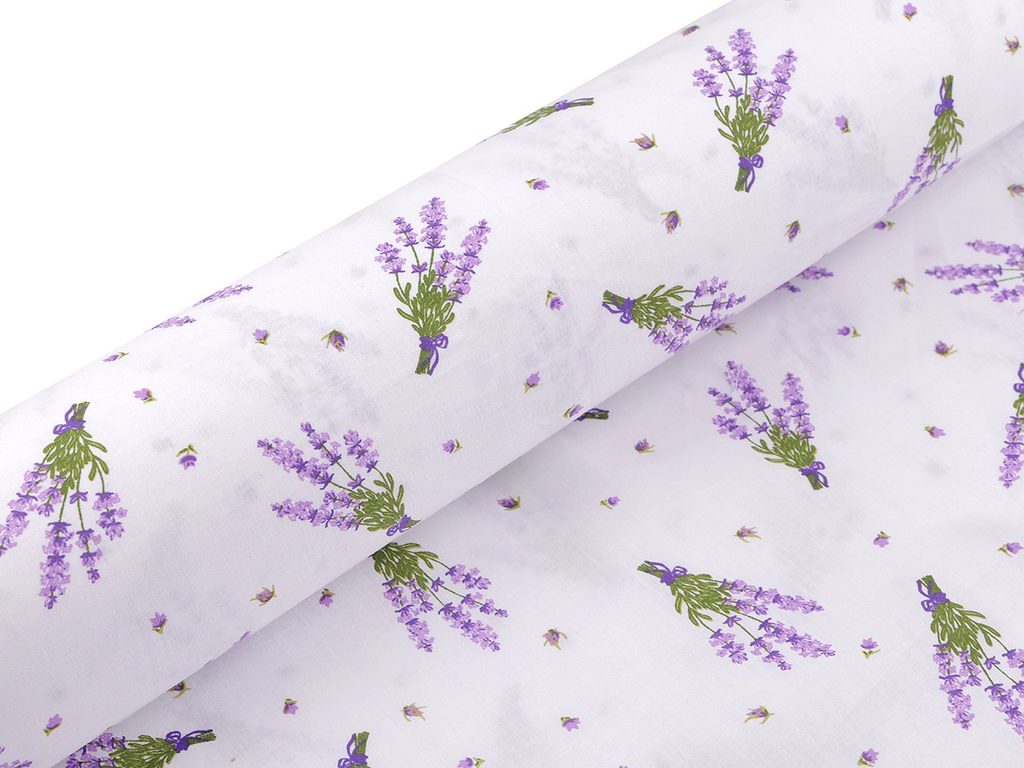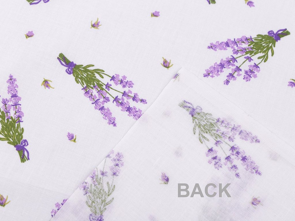 Bavlněnou látku s levandulovým potiskem využijete na šití polštářů, povlečení, závěsů, ubrusů, tašek, pytlíků apod.