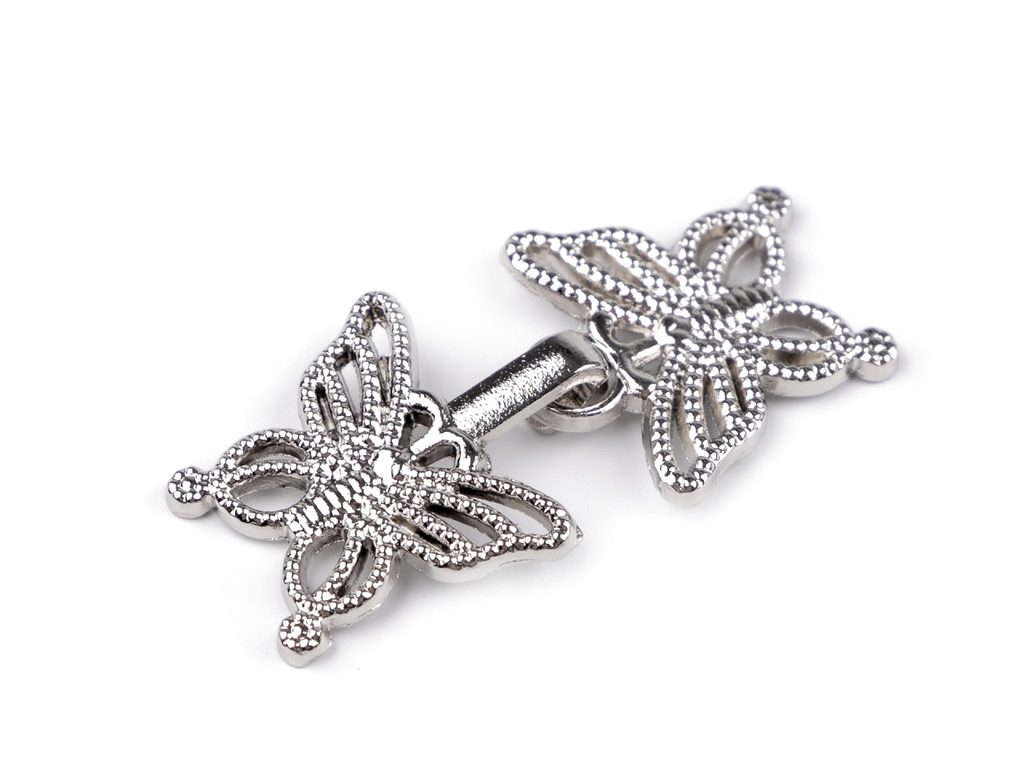 Ozdobné zapínání v designu motýla se skládá ze dvou částí, které do sebe lehce zaháknete. Můžete ho našít místo knoflíků na halenky, kardigany, vesty, svetříky apod.