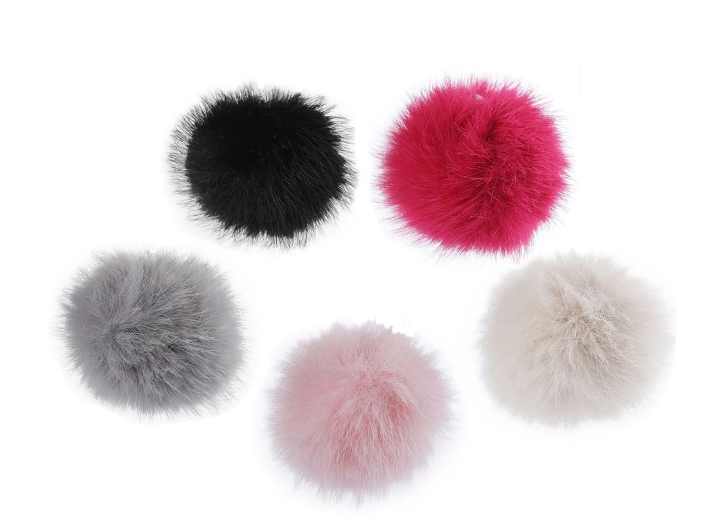 Malá kožešinová bambulka je krásně nadýchaná a příjemná na dotek. Má malé poutko z pruženky, díky kterému ji můžete provléknout například pleteninou. Doporučujeme na spodní stranu pleteniny našít knoflík, ke kterému můžete očko z pruženky pohodlně připnou.