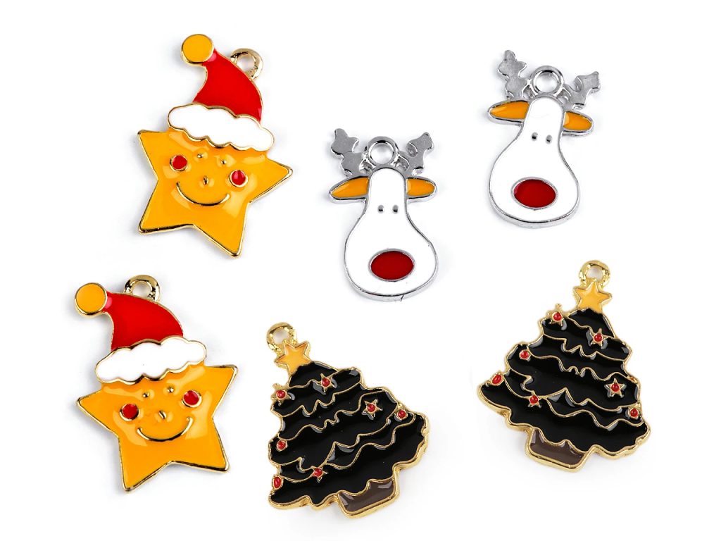 Přívěsek vánoční - hvězda, stromeček, sob 2 ks