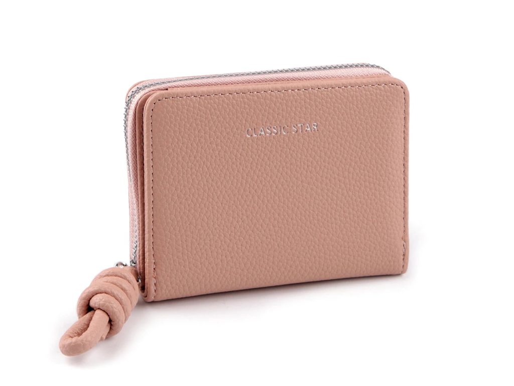 Dámská peněženka s ozdobným uzlem kombinuje stylovou eleganci a praktické využití. Na přední straně má stříbrný potisk Classic star. Peněženka má kompaktní tvar, je vyrobená z kvalitního materiálu s matným povrchem, který je příjemný na dotek. Její velikost je tak akorát do kabelky.