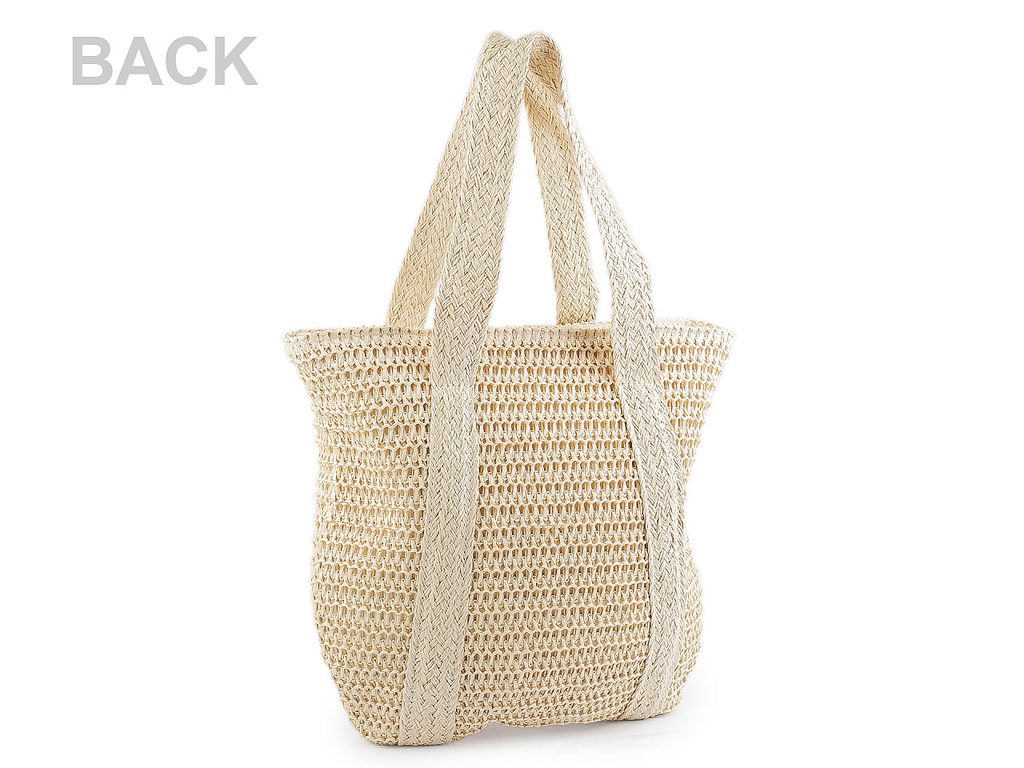 Velká háčkovaná kabelka s ozdobou střapce s dřevěnými korálky je zajímavým doplňkem v boho stylu. Je vyrobená z papírových provázků z palmy rafie, díky tomu je lehká jako peříčko. Decentní vzor háčkování vytváří nadčasový vzhled, který se hodí k různým příležitostem, bude krásným doplňkem vašeho letního outfitu. Uzavírá se na zip, uvnitř má dostatečně velký prostor i na větší věci. Má dvě ucha do ruky a uvnitř malou kapsičku na drobnosti.