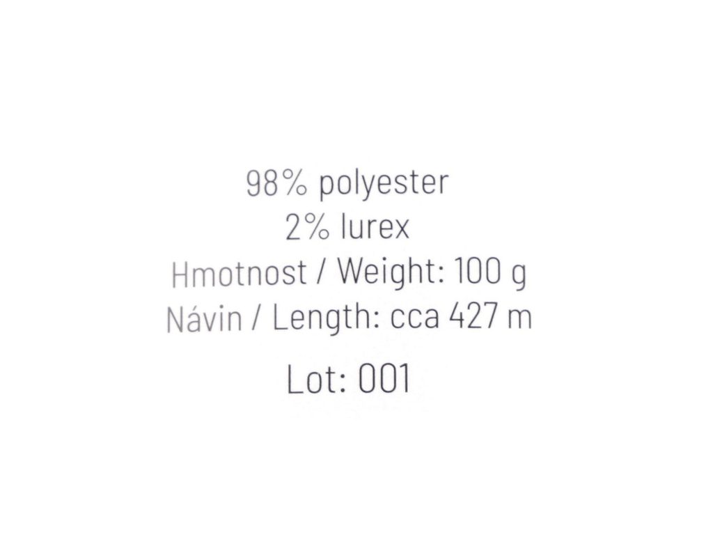 Obrázek produktu "Pletací příze žinylková s lurexem Thea 100 g" může být ilustrační, aby vám poskytl lepší představu o produktu. Pokud si přejete potvrdit, že obrázek a popisek odpovídají skutečnému produktu, neváhejte nás kontaktovat na emailu: info@bexis.cz - odpovědi se dočkáte co nejdříve!