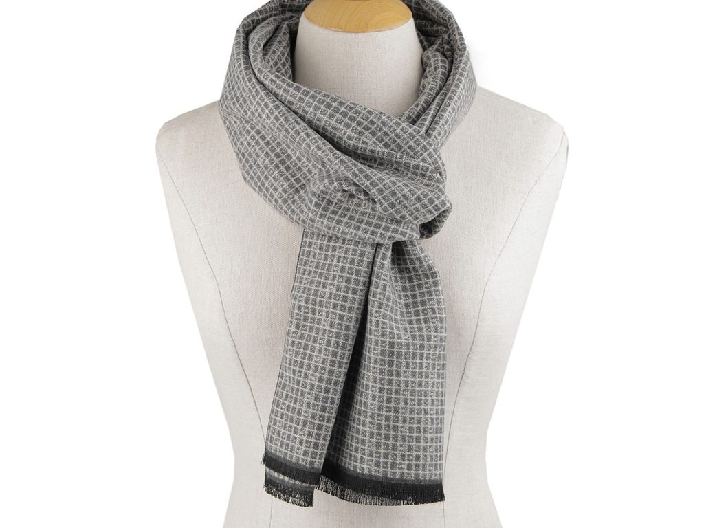 Elegantní pánská šála s kostkovaným vzorem perfektně doladí váš outfit. Je vyrobená z kvalitního materiálu, který vás zahřeje. Šála je na dotek měkká a velice příjemná. Z jedné strany je tmavá, z druhé světlá. Na koncích je zakončená jemnými třásněmi dlouhými 1 cm.