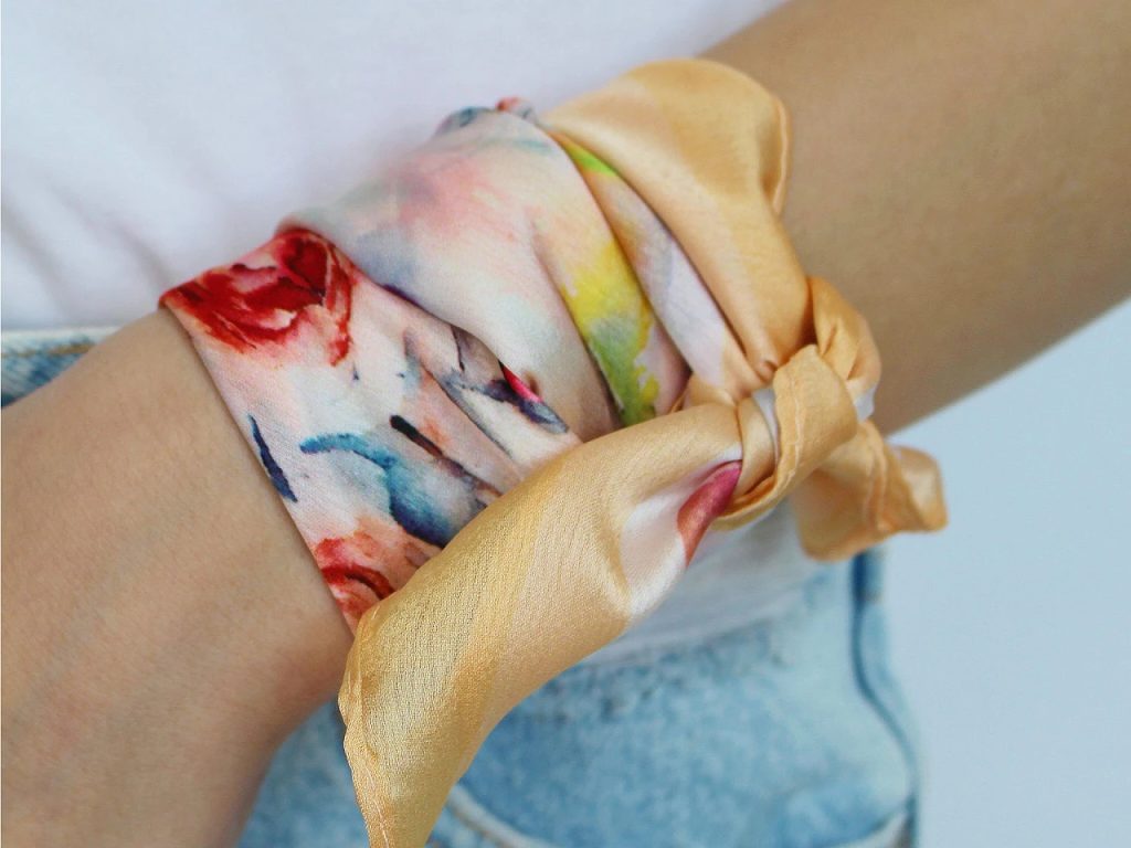 Saténový šátek s potiskem je velice kvalitní, elegantní, využijete jej na každodenní nošení. Je lehounký a měkký, doslova vás bude hýčkat, protože na dotek připomíná hedvábí. Využijete jej do společnosti i na všední nošení k saku, halence, svetříku, šatům apod. Můžete ho uvázat do slušivého uzlu, který podtrhne dokonalost vašeho oděvu.
