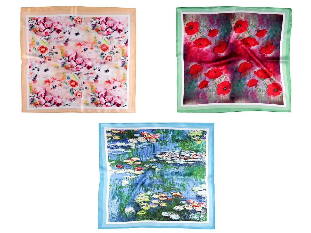 Velký saténový šátek s květy 130x135 cm