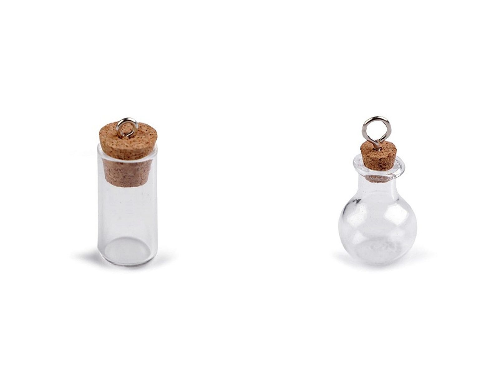 Skleněný přívěsek lahvička s korkem 13x37 mm kapka