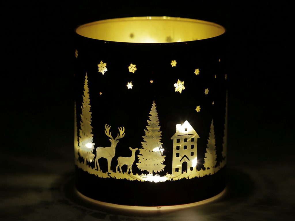 Skleněný LED svícen s motivem zimní krajiny využijete v období Vánoc, kdy se postará o zútulnění brzkých večerů. Vnitřní zlatá barva krásně odráží světlo a umocňuje tak celkový světelný efekt svícnu.