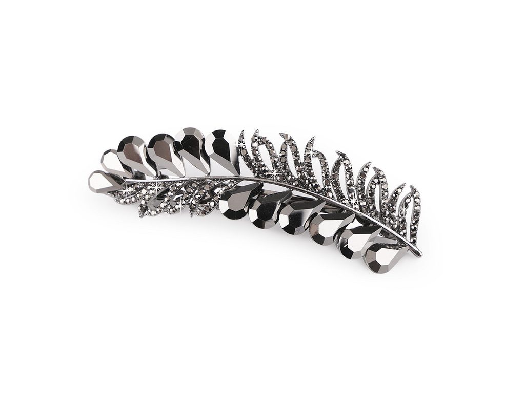 Francouzká spona do vlasů s broušenými kamínky s AB efektem list