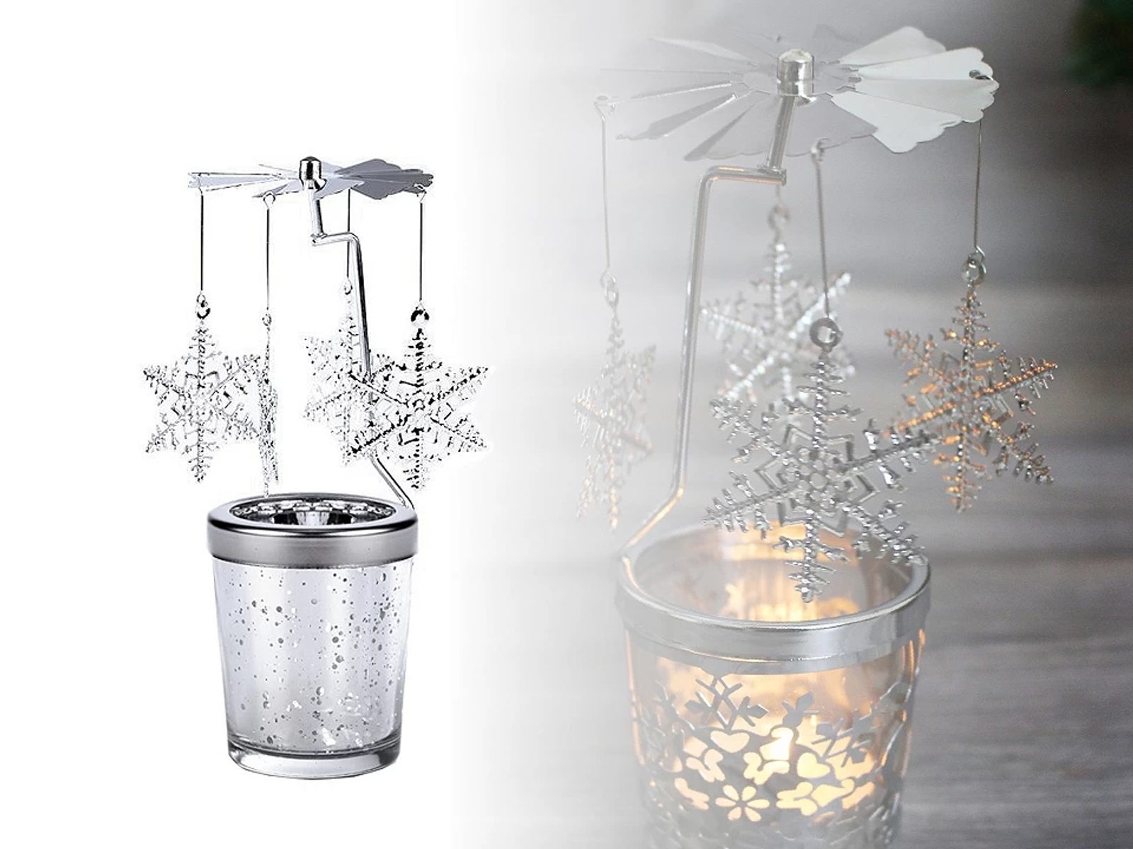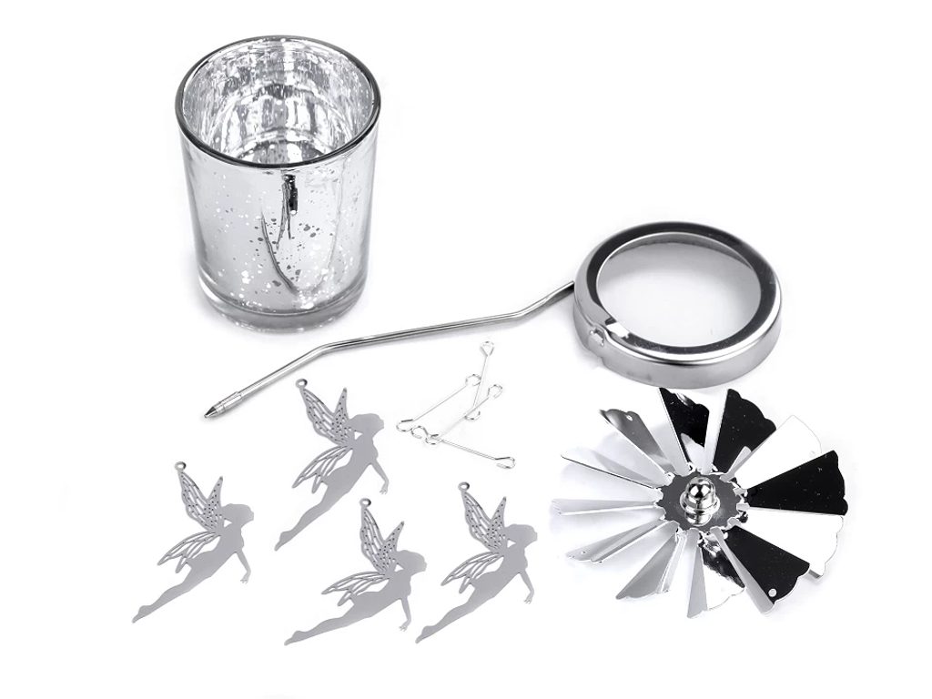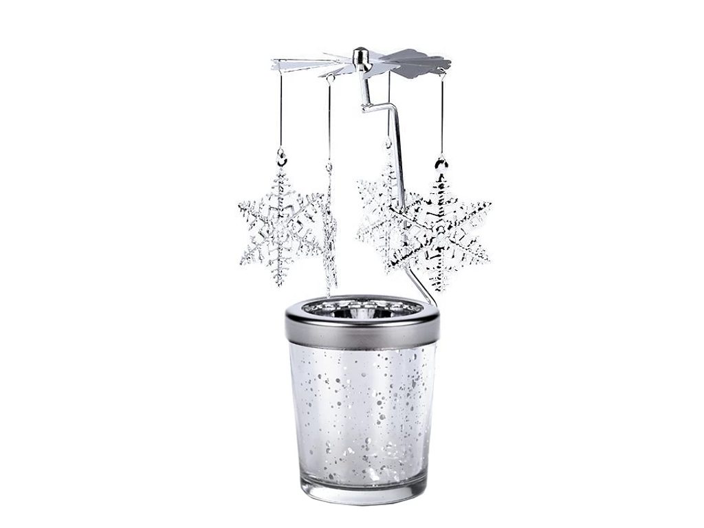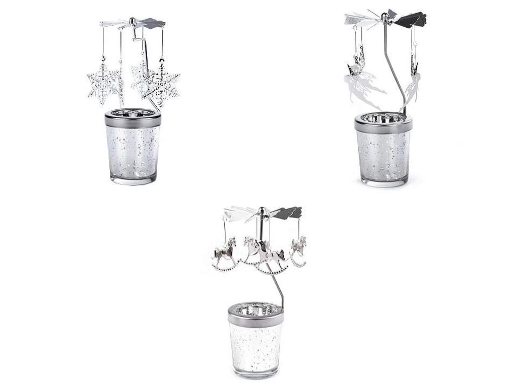 Vánoční kolotoč je příjemnou dekorací v období zimy. Vložte do něj zapálenou čajovou svíčku a ozdoby na kolotoči se roztočí.