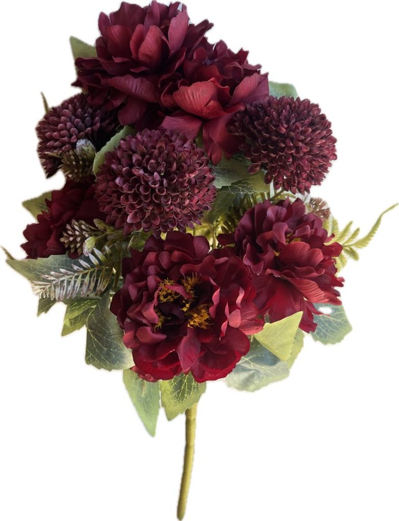 Umělá kytice s velkými květy v tmavě červené barvě