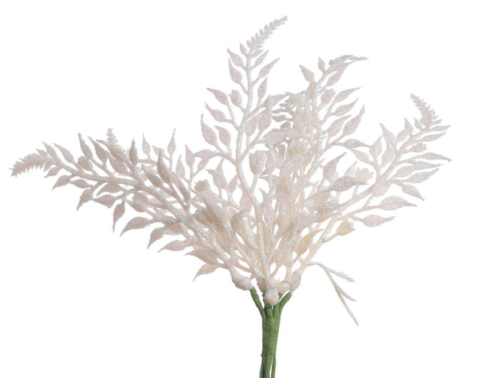 Svazek třpytivých lístků v bílé barvě. Lístky využijte jako dekoraci, přízdobu do vazeb, aranžmá, věnců, kytic. Krásná zimní dekorace.