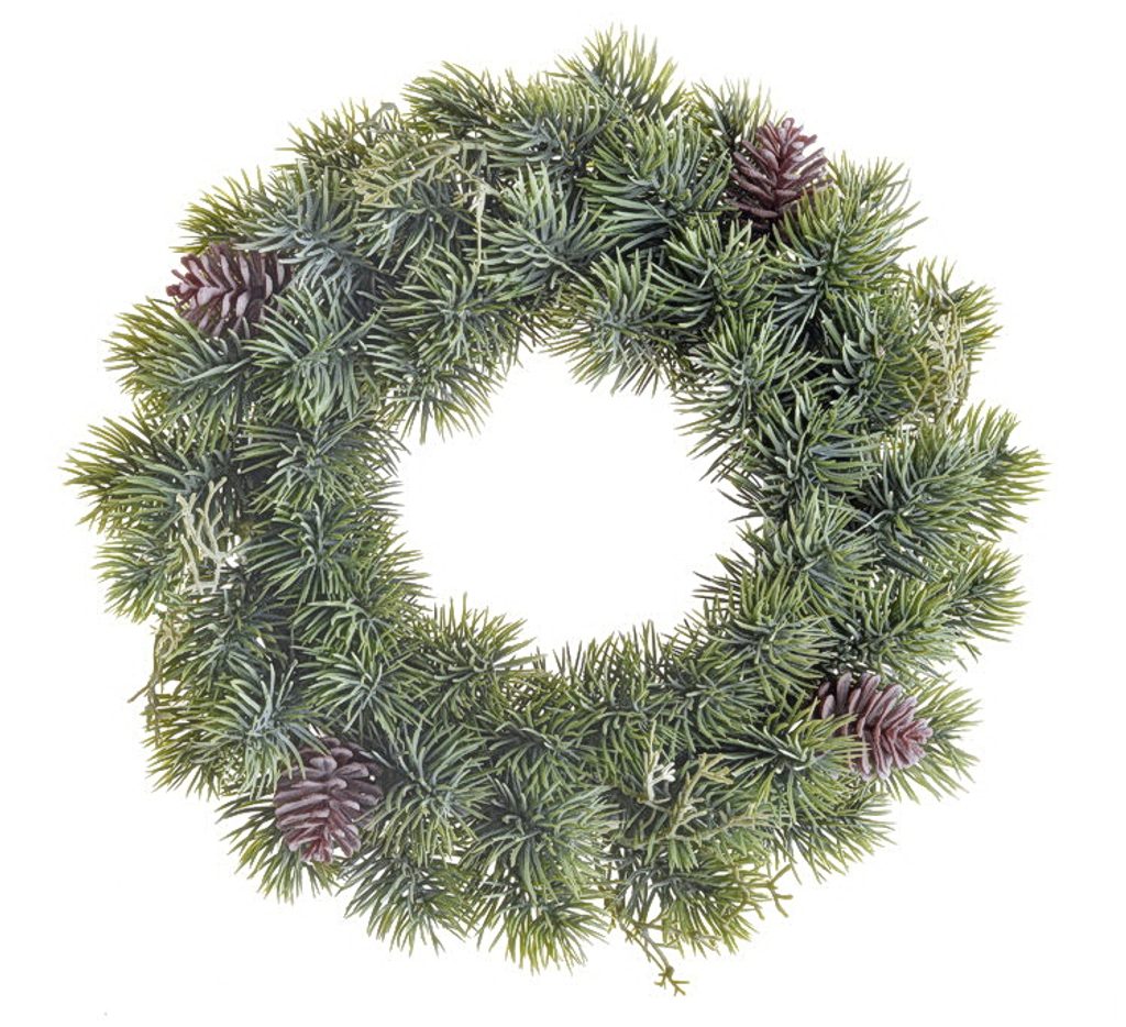 Věnec z umělého jehličí se šiškami. Věnec si můžete dozdobit dle vlastní fantazie.