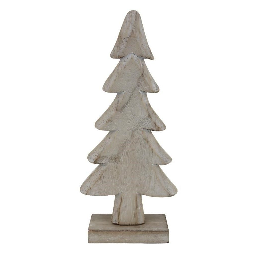 Dekorační stromek. Rozměry : 9,5 × 4 cm, výška 21 cm. Barva : kombinace přírodní s bílou. Materiál na bázi dřeva.