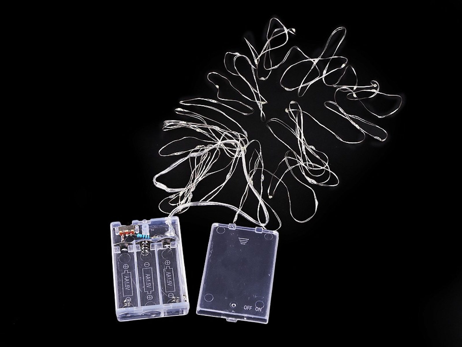 Řetěz je na 3 kusy AA baterií, které nejsou součástí. Je určený na vnitřní použití.