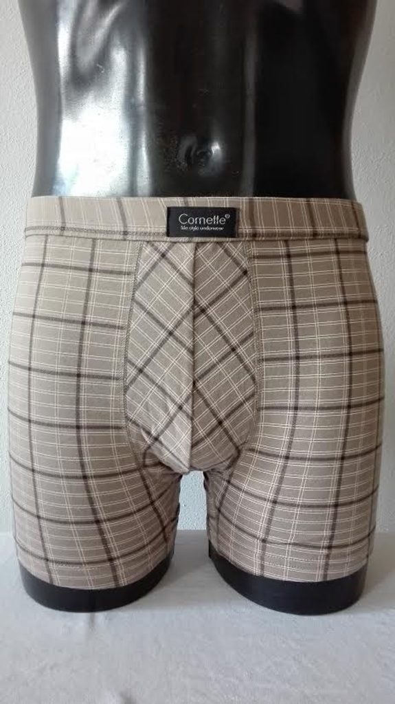 Pánské kárované boxerky Prime Cornette - díky svému střihu nepřekáží v pohybu a neomezují jej - má pohodlný a prostorný klín - s plochými švy a jeho nohavičky netlačí do stehen - v pase je plochá guma obšitá bavlnou